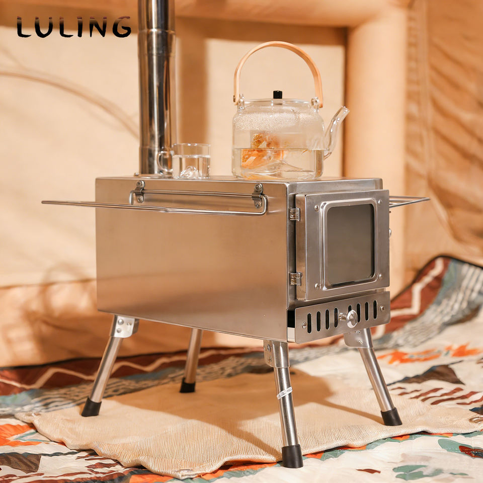 Estufa de Leña Portátil de Acero Inoxidable para Acampar al Aire Libre, de la Fábrica Luling, para Calefacción y Cocina