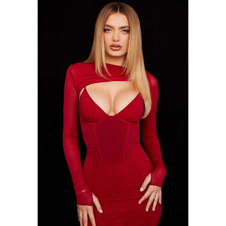 Ruffles Bottom vestidos de celebridad con lentejuelas de cuello transparente