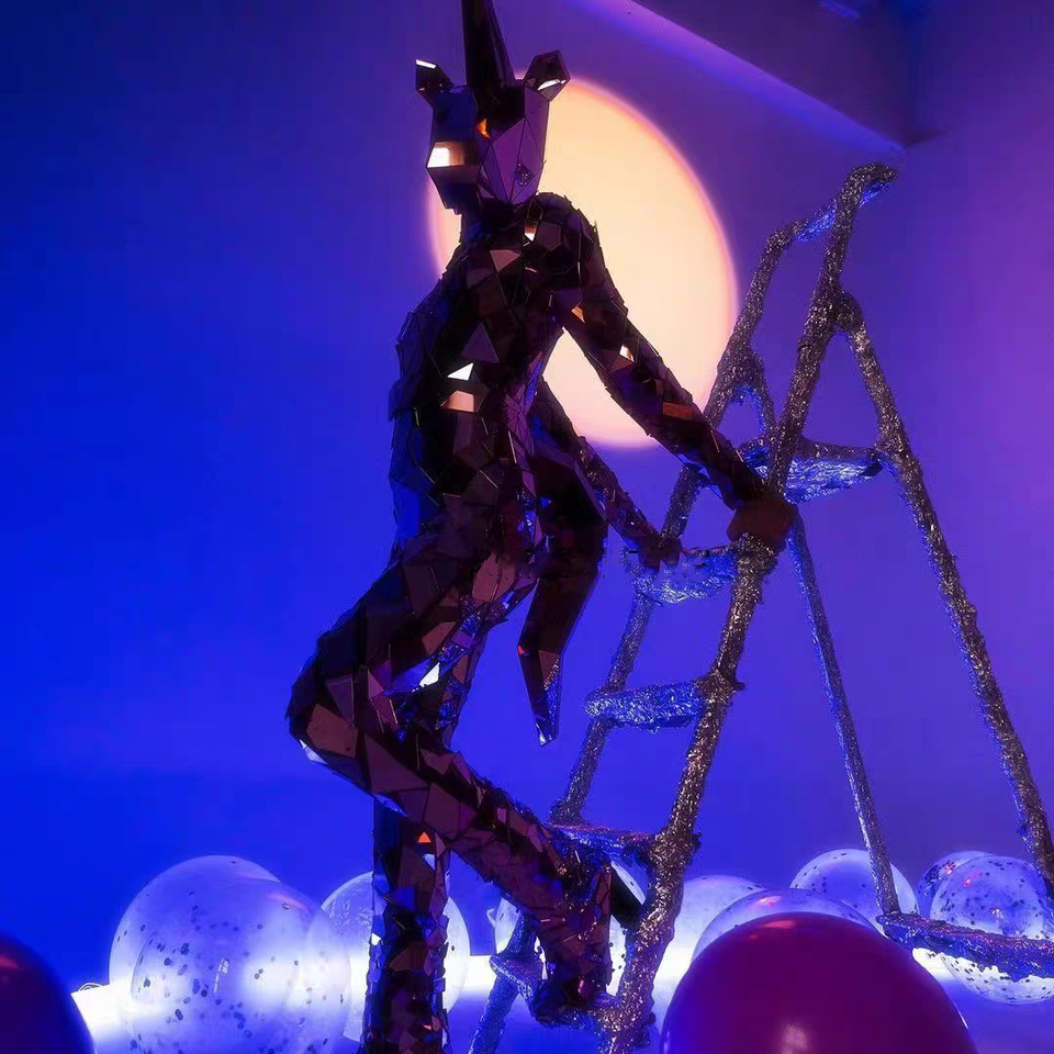 Luminous Mirrorsuit Party Performance Dj Ropa Diseño de espejo Máscara de unicornio reflectante Casco Vestido de espejo Traje de baile GoGo