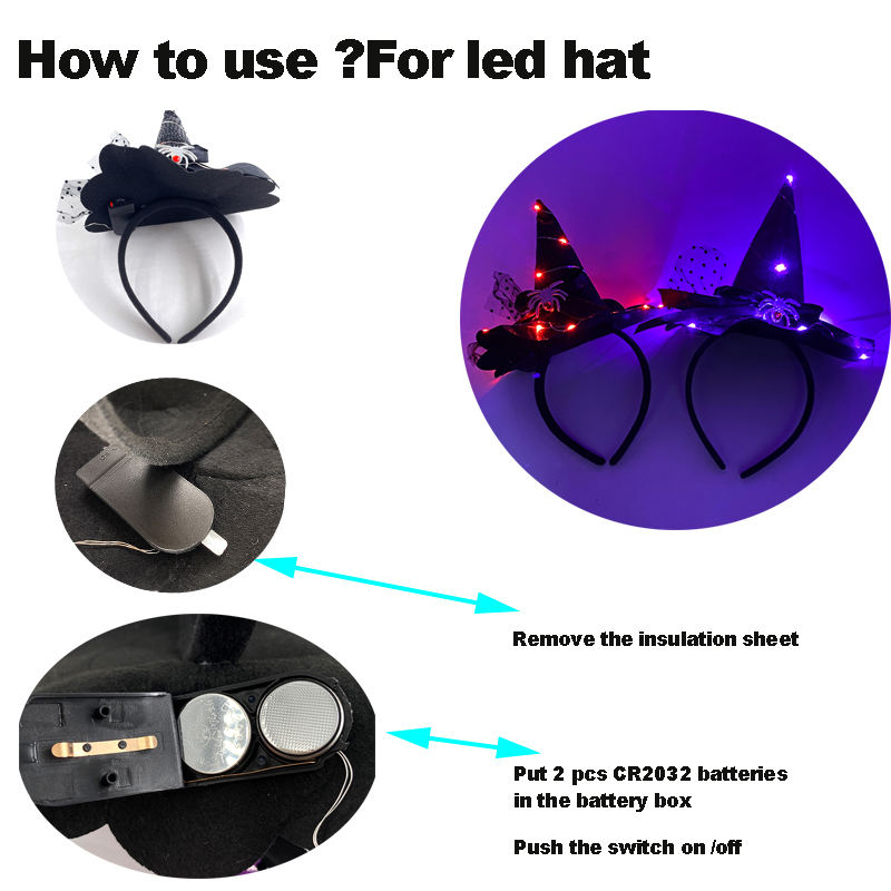 Sombrero de bruja luminoso Horror Spider LED diadema para mujer Halloween Cosplay accesorio suministros Halloween Rave Night Decor