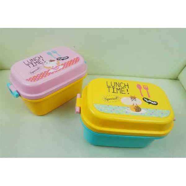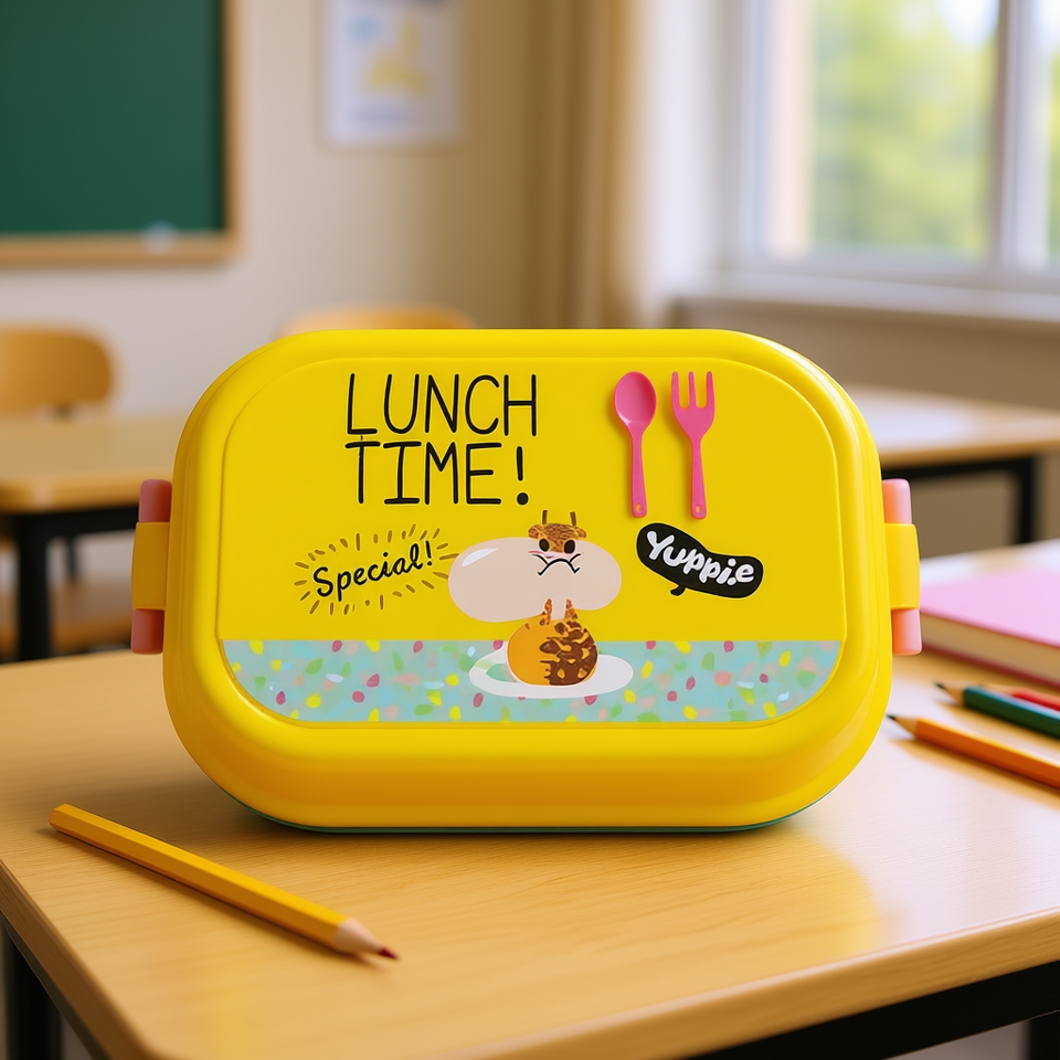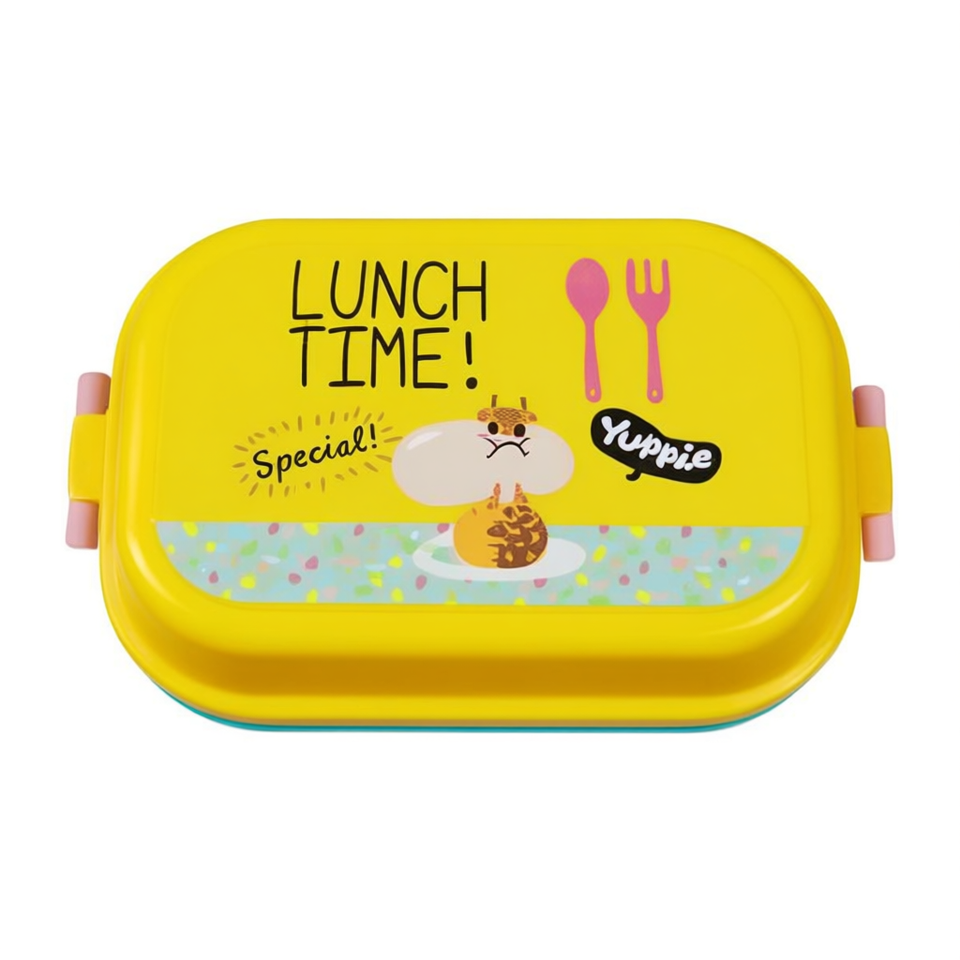 Lonchera de plástico con contenedor de alimentos, cuchara y tenedor para niños, para uso escolar