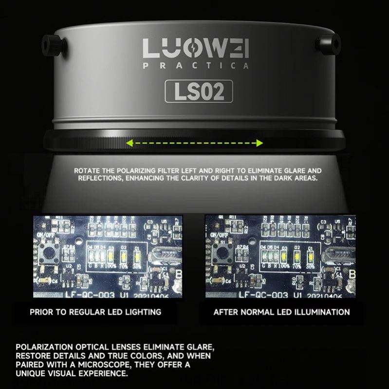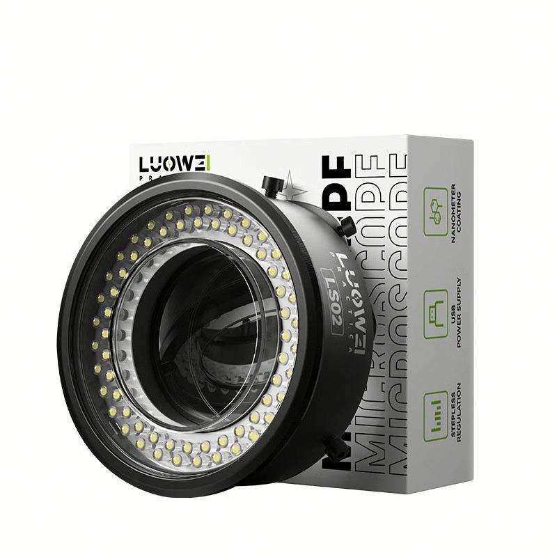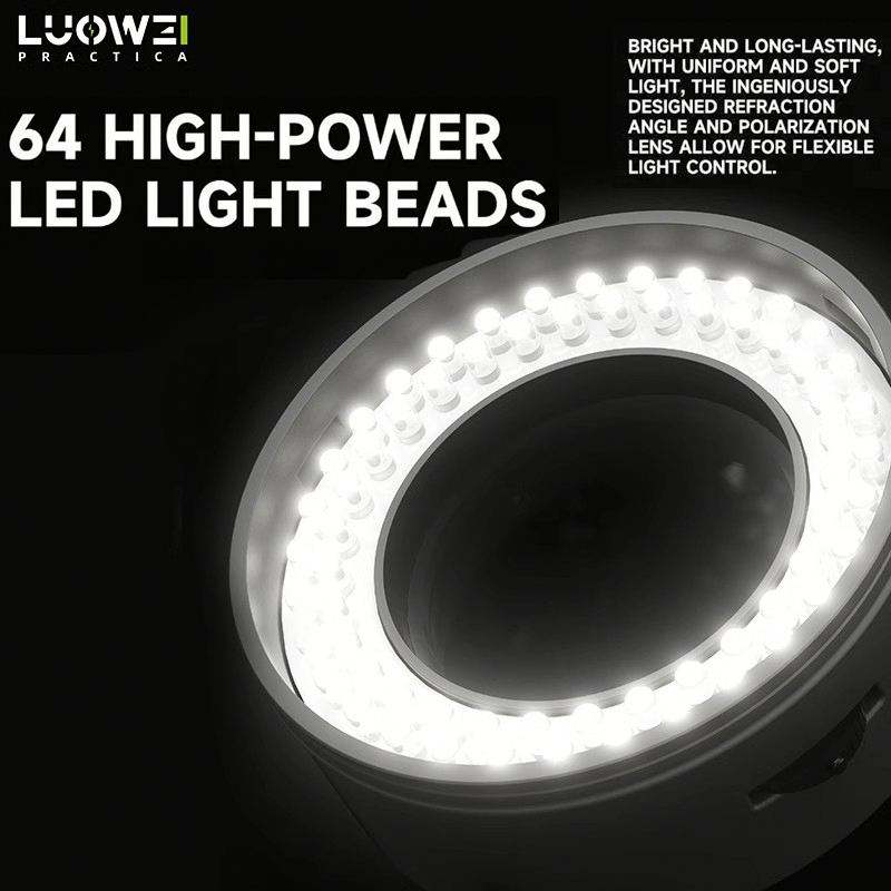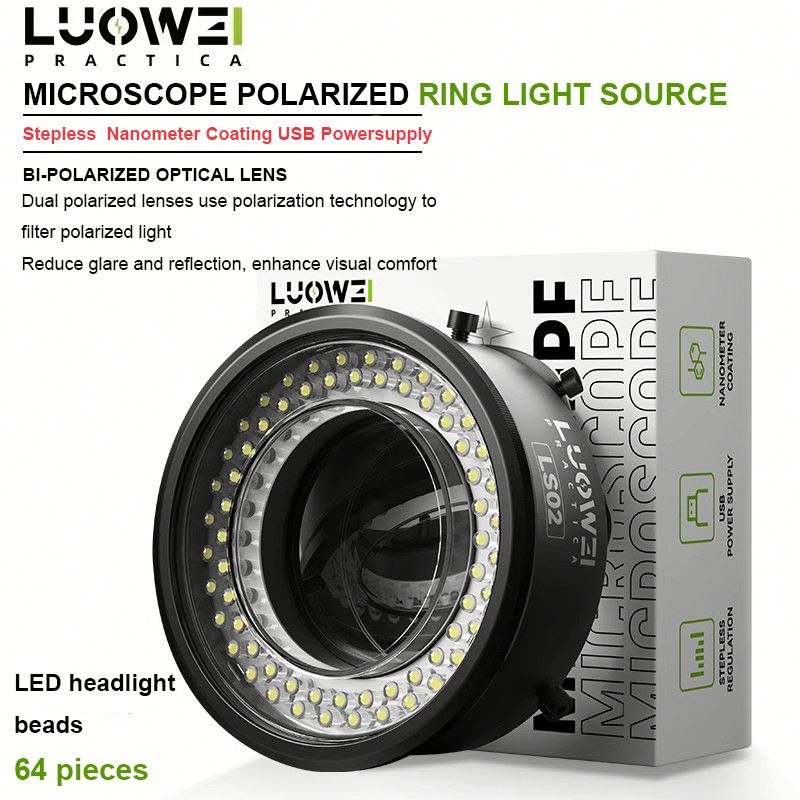 Luowei-Anillo polarizado para microscopio, fuente de luz antideslumbrante, anillo de luz, calibre 61mm, 64 cuentas LED