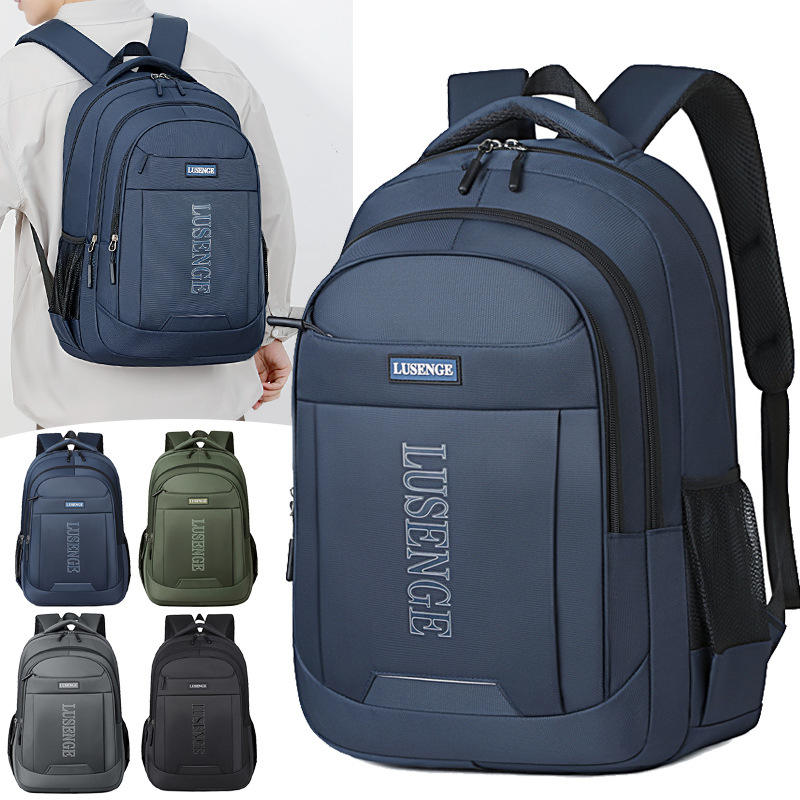 Lusenge Laptop Backpack Large Capacity Unisex Casual Travel Business Backpack Navy Blue Black Green Gray Solid Color