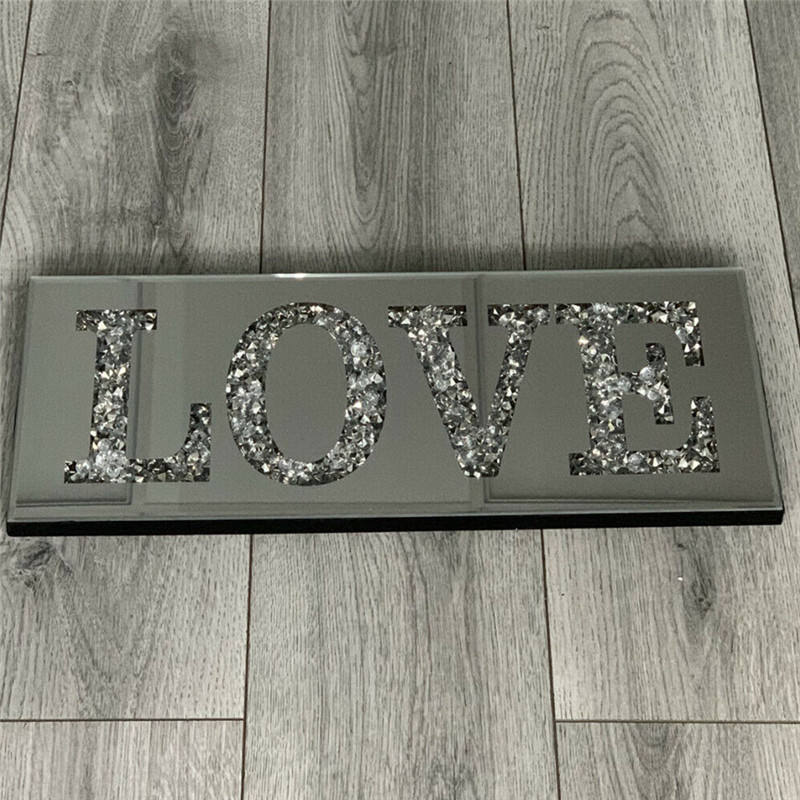 Lux Bling Crystal Rhinestone Diamante aplastado con incrustaciones moderno montado en la pared para LOVE HOME Shape Espejo colgante para maquillaje de baño