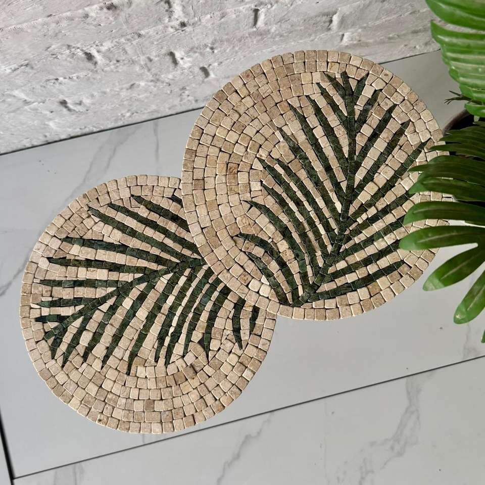 Nombre del Producto:Mesas nido de mosaico color crema Lux con motivo de palma de albahaca