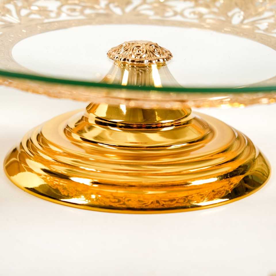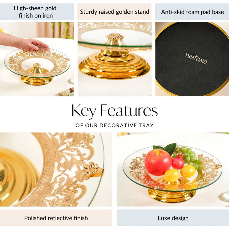Pedestal Decorativo de Lujo, Elegante Base Redonda de Hierro y Vidrio con Espuma para Decoración y Accesorios de Mesa