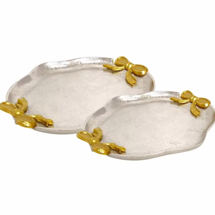 Lujosas bandejas de aluminio 2 en 1 para servir, vajilla de comedor de diseño étnico para decoración del hogar, sala de estar pintada para bebidas