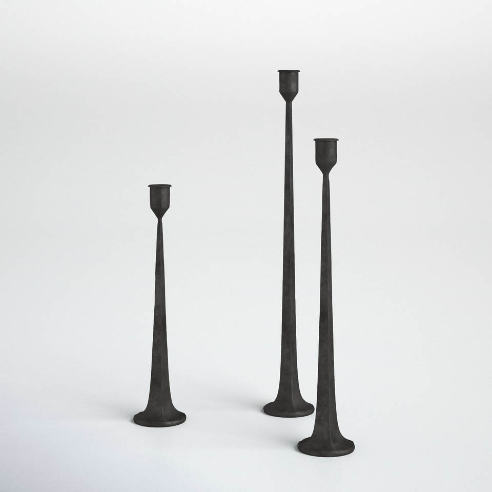 Lujoso candelabro de metal negro y hierro fundido dorado Vintage de 3 piezas para el hogar y crear una exhibición de velas sofisticada