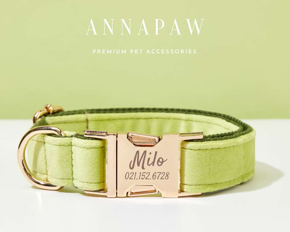 Collar de Perro de Cuero de Aguacate de Lujo con Aleación, Hecho a Mano, Regalo de Boda para Cachorros, Collar con Grabado Personalizado, Corbata de Moño y Correa