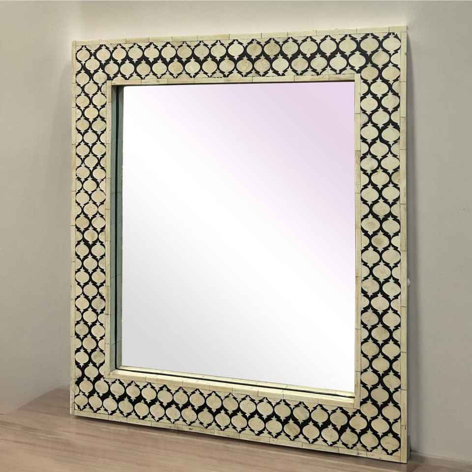 Espejo de Pared Decorativo de Lujo con Incrustaciones de Hueso, Diseño Intrincado para Espacios Elegantes, Hecho a Mano, Diseño y Color Increíbles, Material: Hueso
