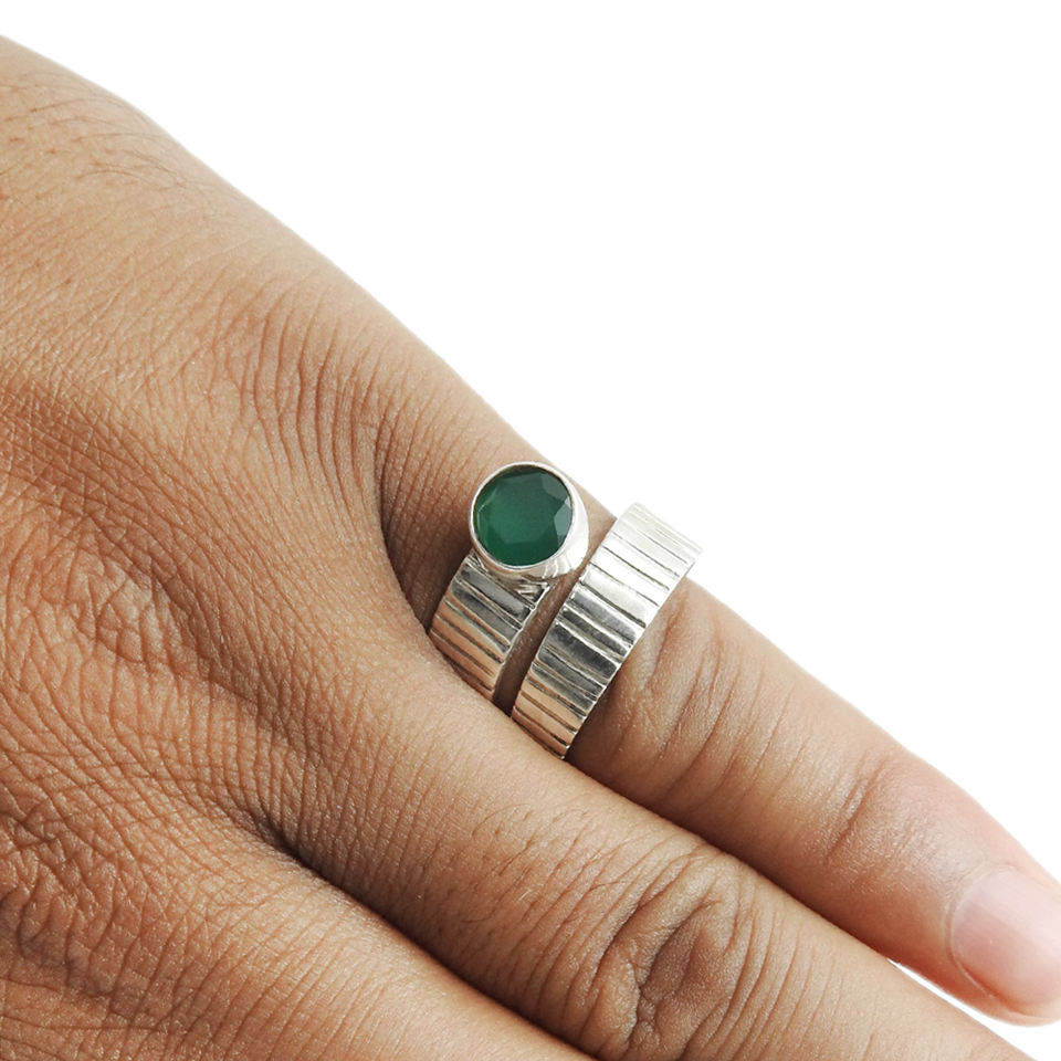 Lujoso diseño plata hecho a mano diseñador Natural verde ónix piedra preciosa promesa anillos estampados 925 plata esterlina joyería fina