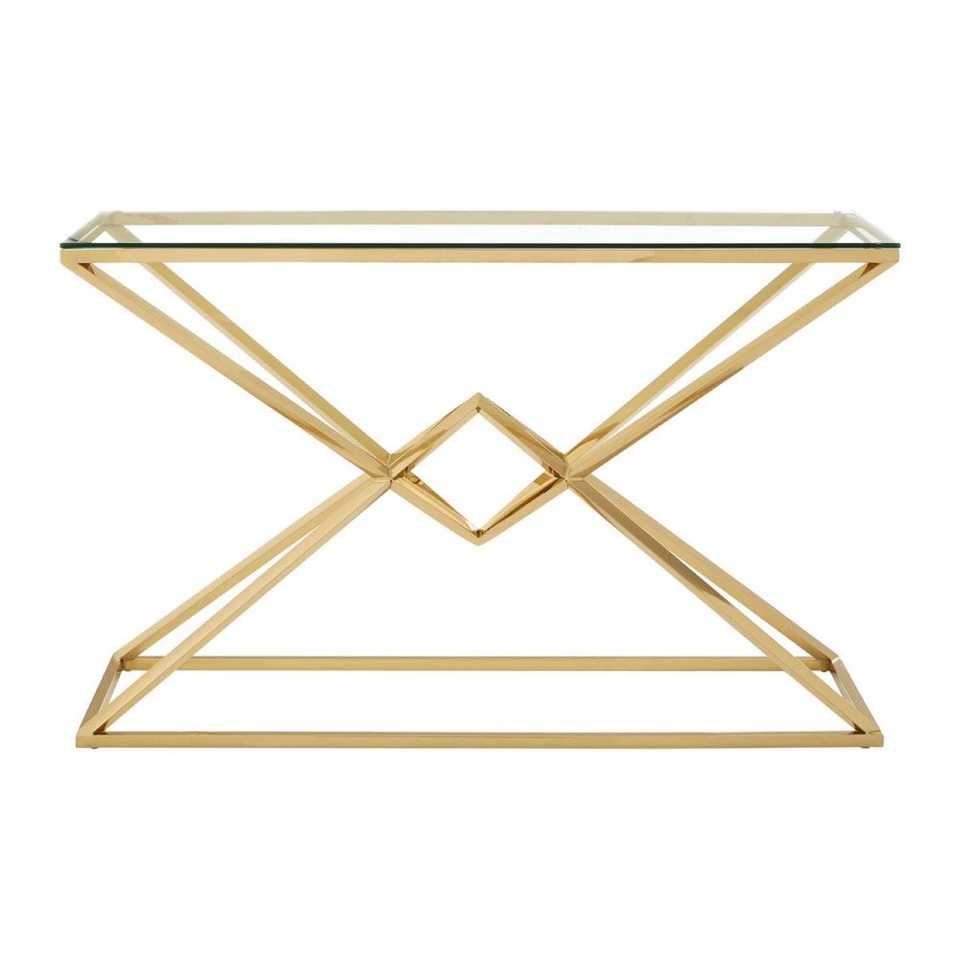 Mesa Consola de Lujo con Base de Diamantes Dorados y Tapa de Cristal para Decoración de Hogar Contemporáneo