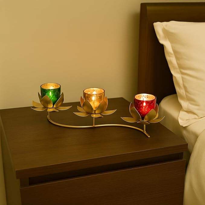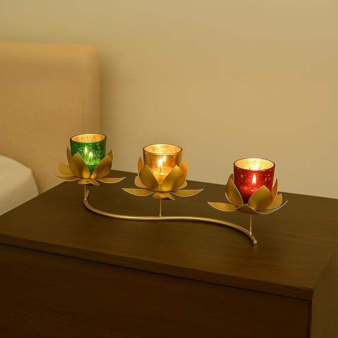 Candelabro Antiguo Dorado de Diseño Elegante Hecho a Mano, Decoración Única para el Hogar de Pascua, Artículo de Regalo con Portavelas de Metal