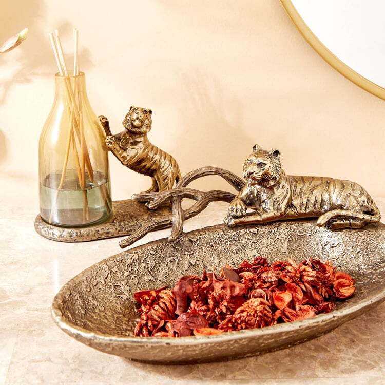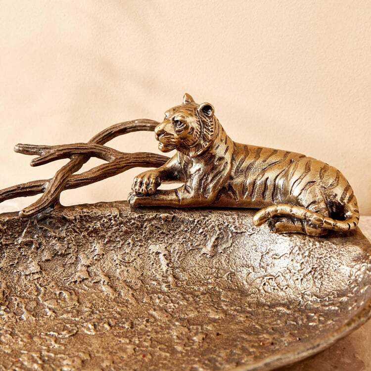 Lujoso plato de oro con figurita de tigre Una pieza llamativa Elegante plato de oro con figurita de tigre