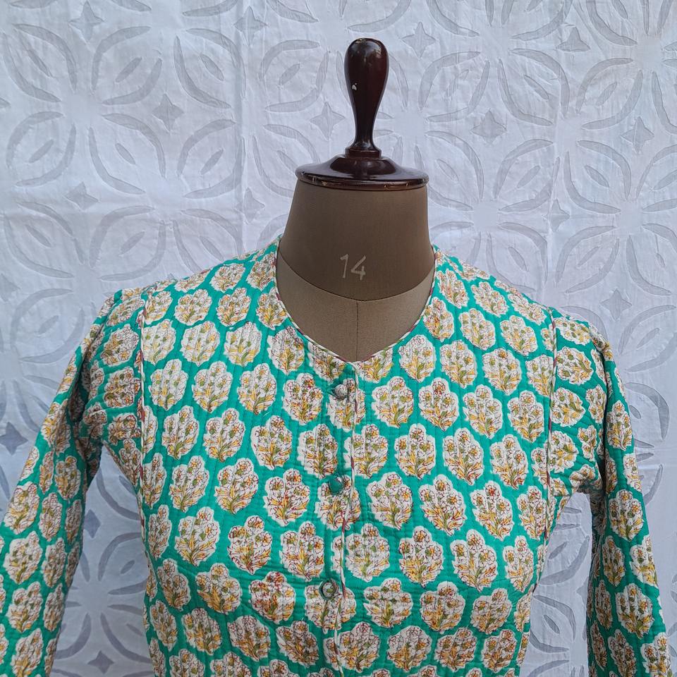 Product Name:Cotton Hand Block Printed Quilted Jacket For Women