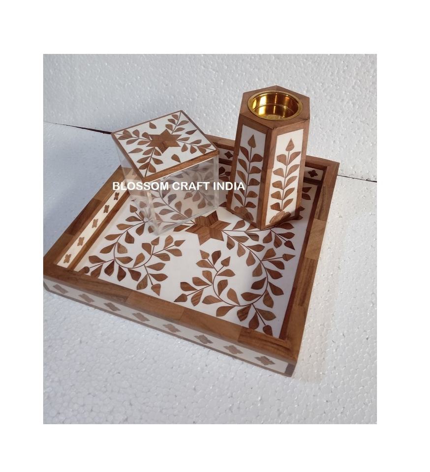 Bandeja de Incrustaciones de Hueso Hecha a Mano de Lujo por Blossom Craft India, Bandeja Decorativa Árabe con Incrustaciones de Madera, Aroma a Sándalo y Anís Estrellado