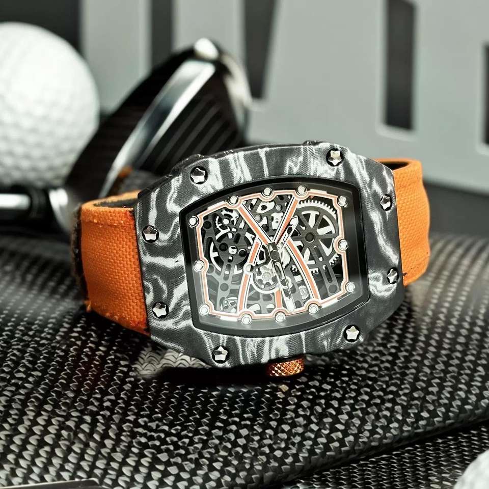 Reloj de Pulsera Deportivo de Cuarzo con Esqueleto Elegante y Correa de Nailon Brillante, Personalizable de Alta Calidad y Lujo