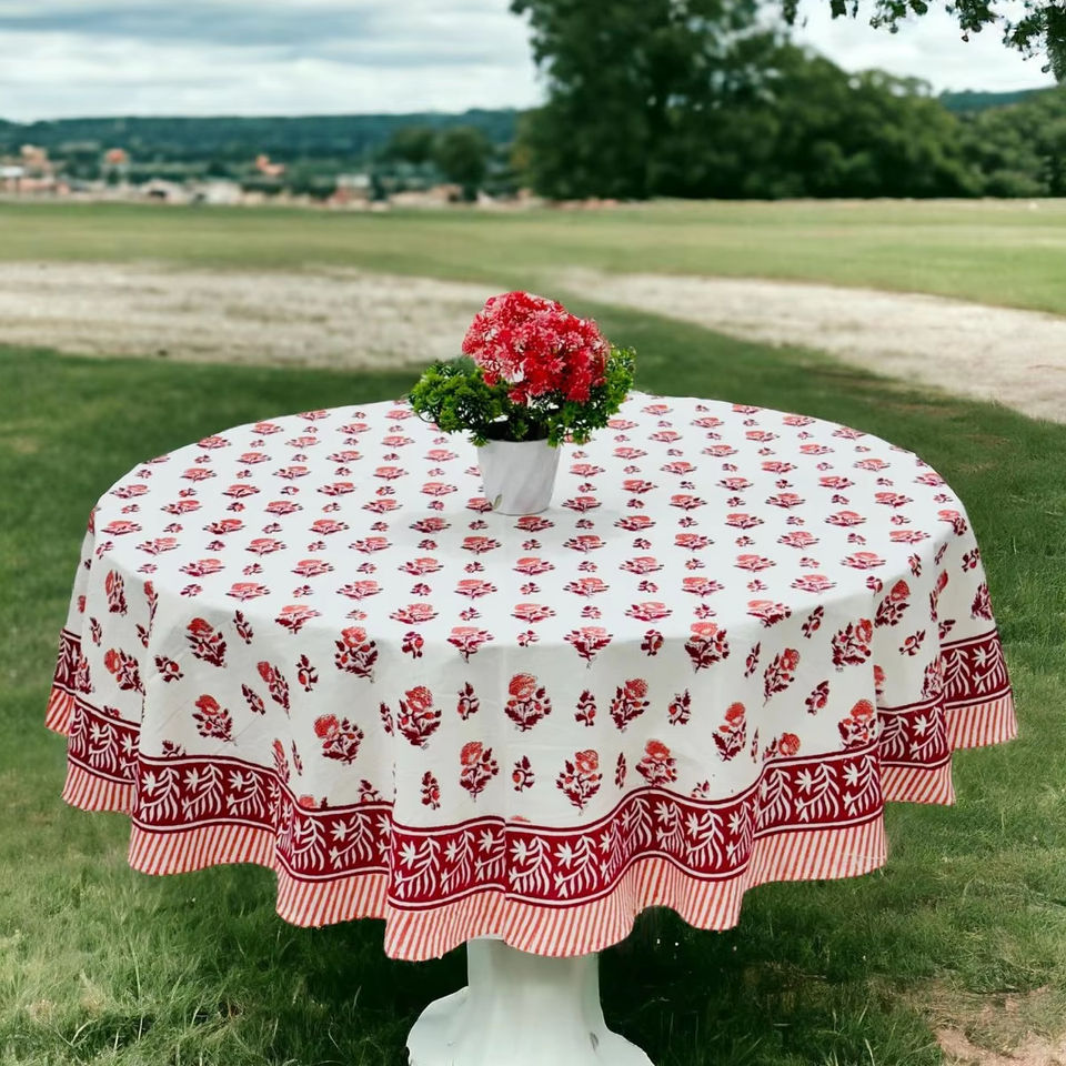 Lujoso mantel de algodón estampado a mano indio de edición limitada Patrón floral Cubierta de calidad fina hecha a mano