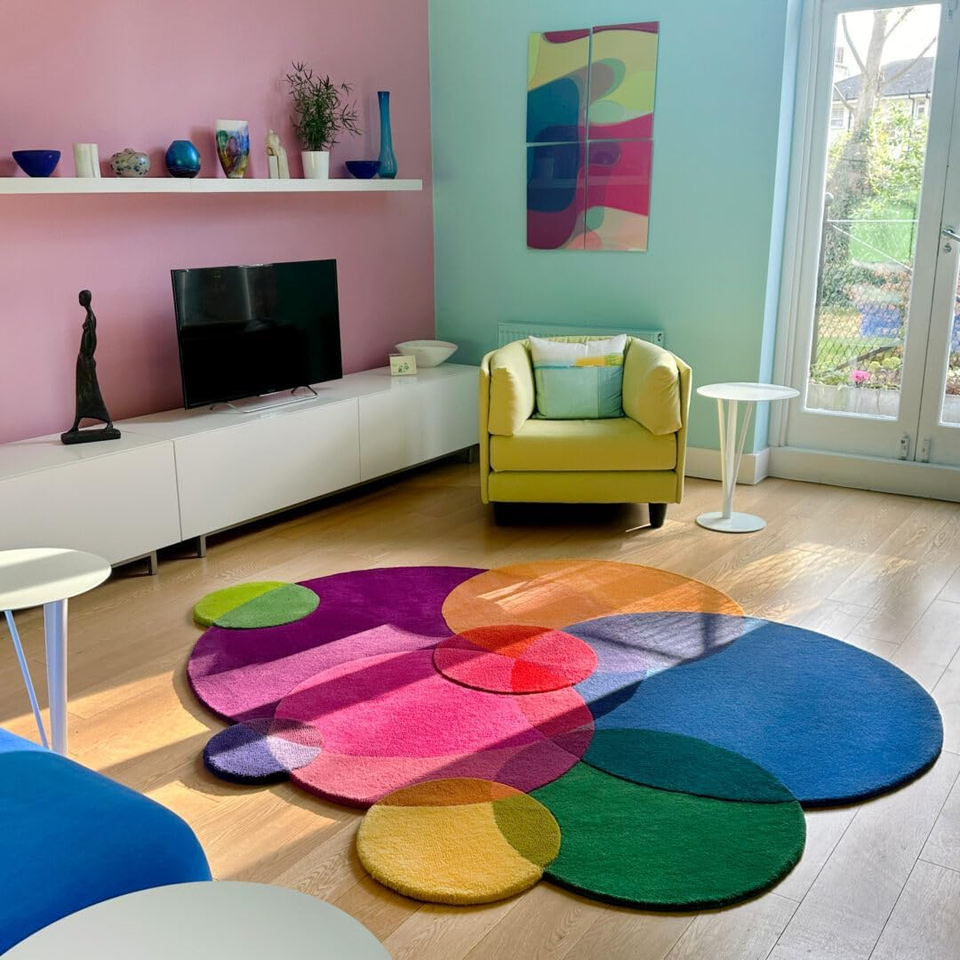 Alfombra de Lana Hecha a Mano Moderna y Lujosa para Sala de Estar, Dormitorio, Estilo Rústico, Rectángulo Irregular, Burbuja, Multicolor, Juego de Alfombras