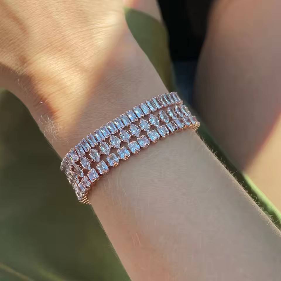 Lujosa nueva Plata de Ley 925 exquisita Shinys All Zircon Stars pulsera de tenis en forma de corazón pulsera con abalorio regalos sorpresa