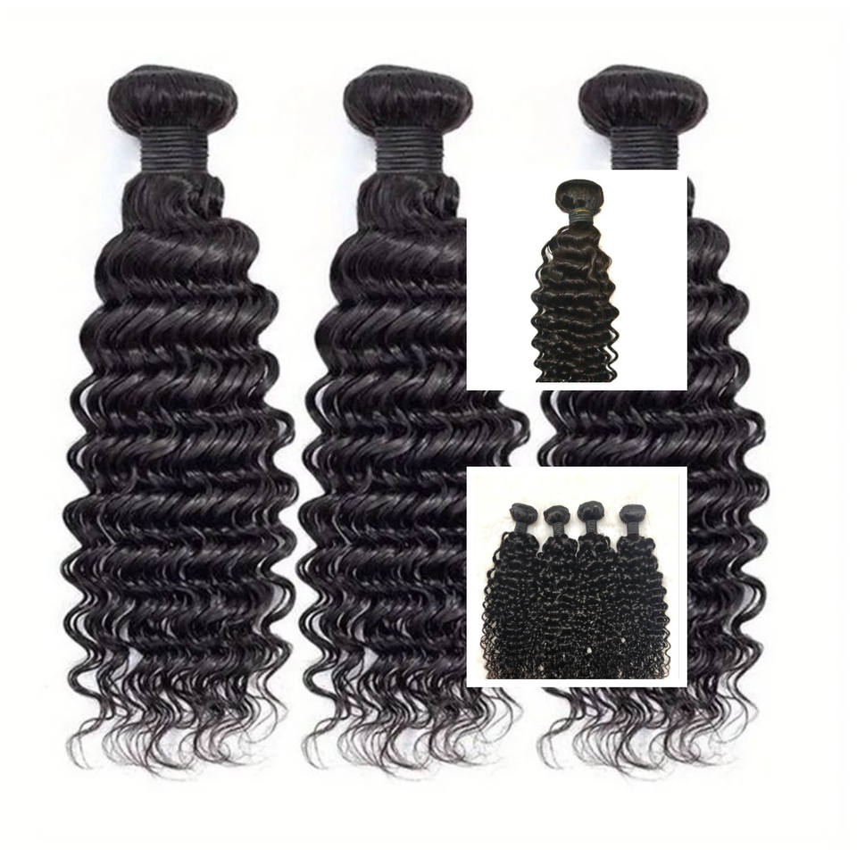 Extensiones de cabello humano crudo de alta calidad de trama de cabello ondulado profundo camboyano Remy lujoso