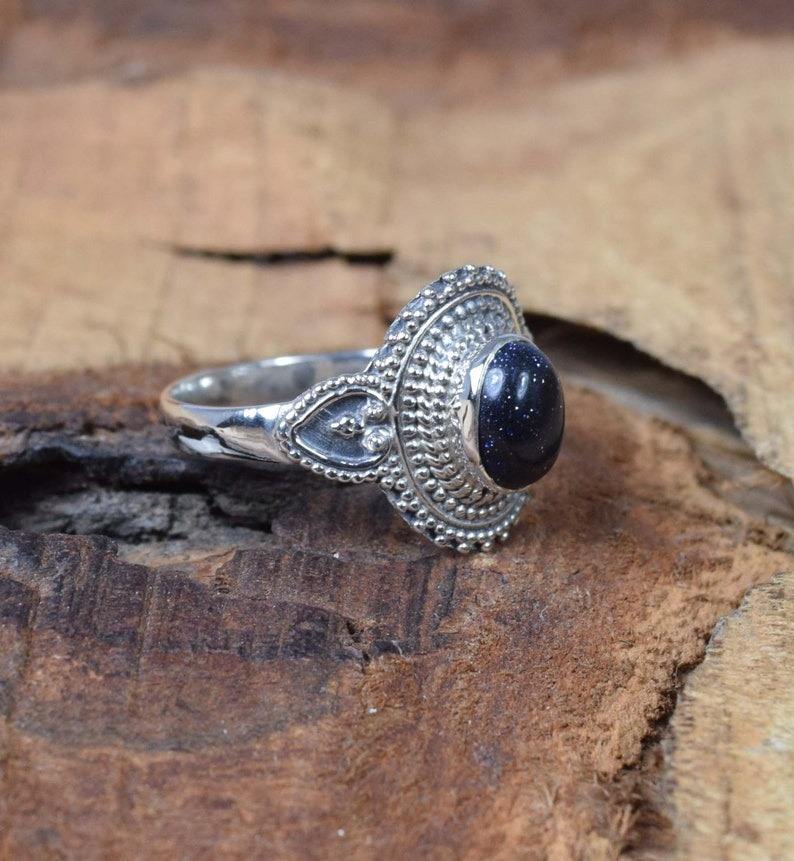 Anillo de lujo hecho a mano Plata de Ley 925 piedra solar de moda joyería de piedras preciosas naturales sólidas anillo estampado de plata de ley 925