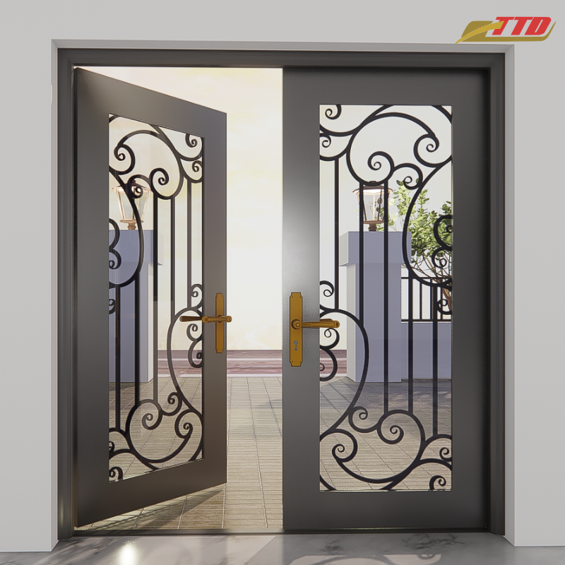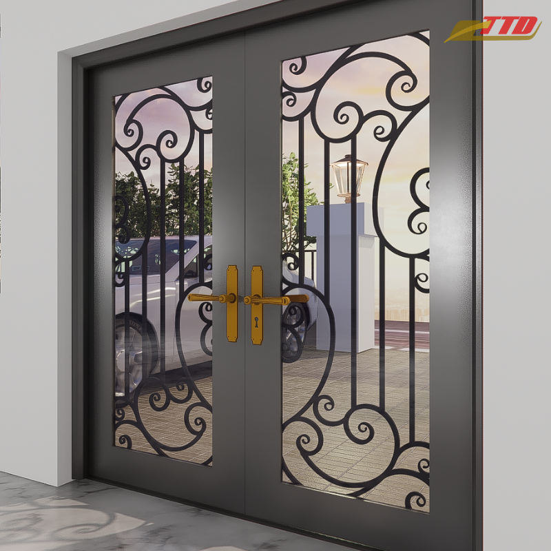 Puertas de Entrada de Hierro Impermeables de Lujo, Detalles Decorativos de Metal, Marcos de Acero Resistentes, Tamaño Personalizado para Exteriores de Casas Modernas