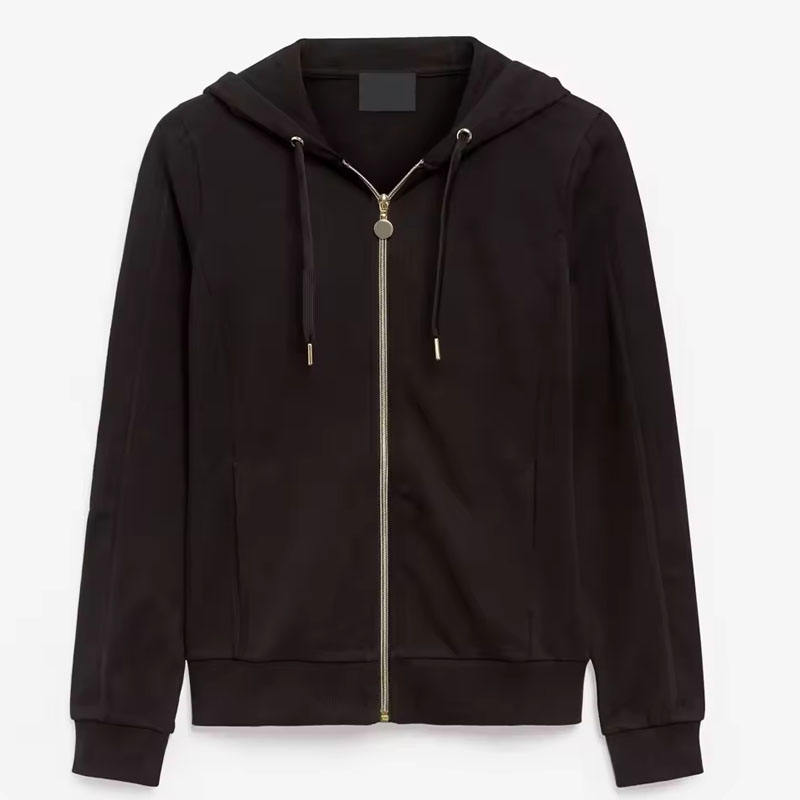 Lujoso tejido duradero totalmente negro con una chaqueta con capucha y cremallera completa y pantalones estilo Jogger 100% chándales de algodón para mujer