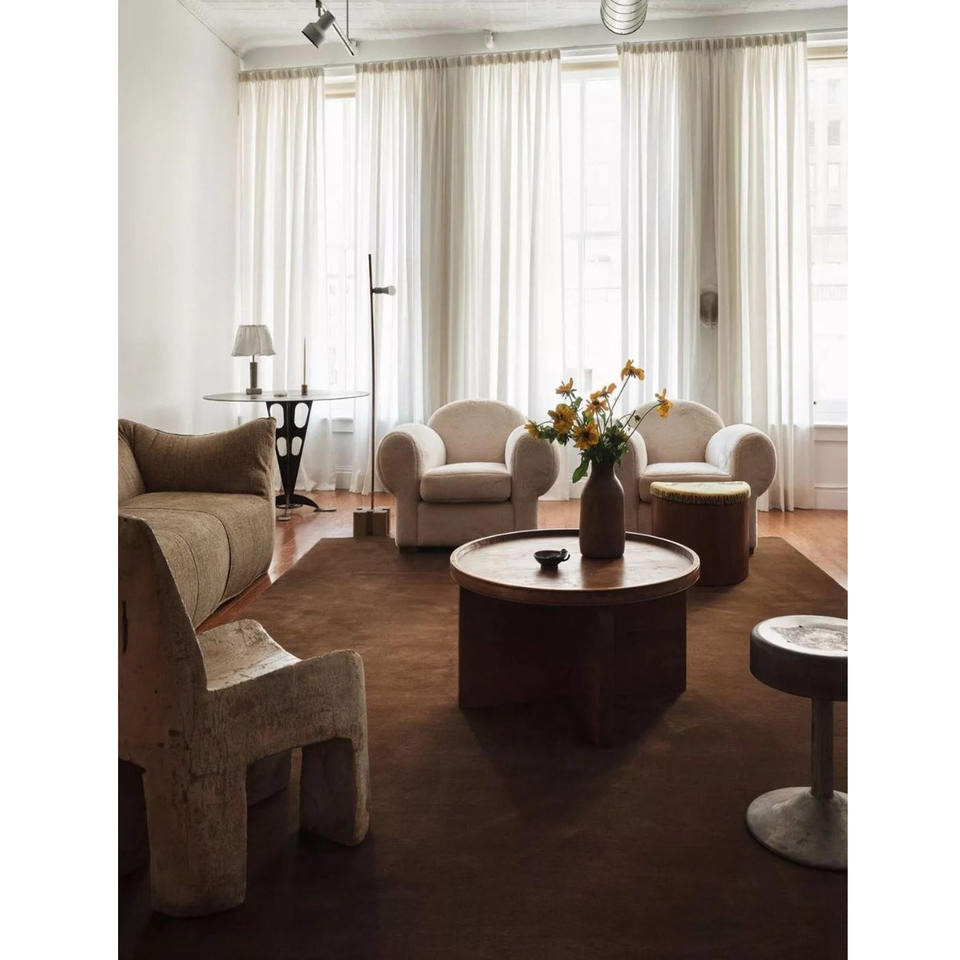 Alfombra de Lujo 100% Lana Color Chocolate Marrón | Alfombra Marrón Café de Estilo Nórdico Minimalista | Alfombra de Hotel de Lujo, Lisa, de Alta Densidad, Decoración para el Hogar