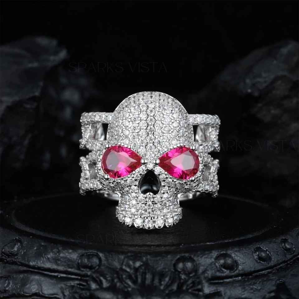 Anillo de Lujo con Incrustaciones de Moissanita Creada en Laboratorio de 10K/14K/18K, Diseño de Calavera, Estilo Hip Hop Punk, Certificado GIA, Unisex