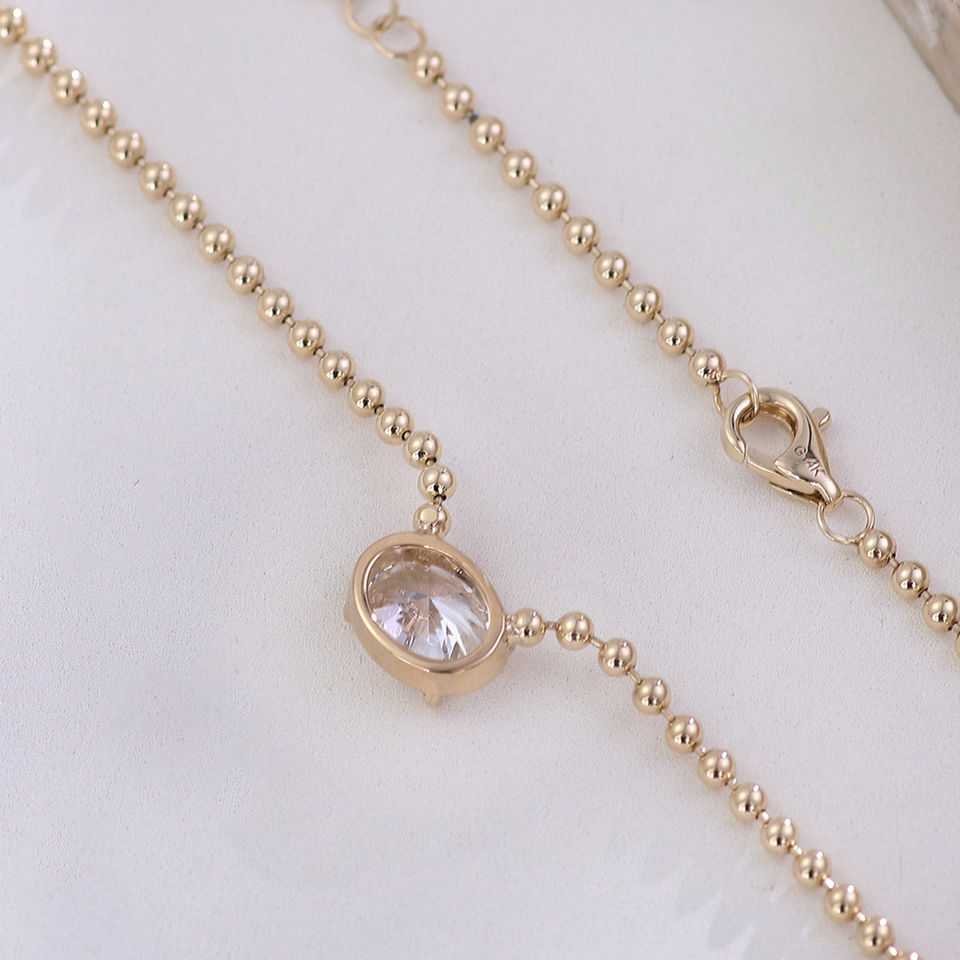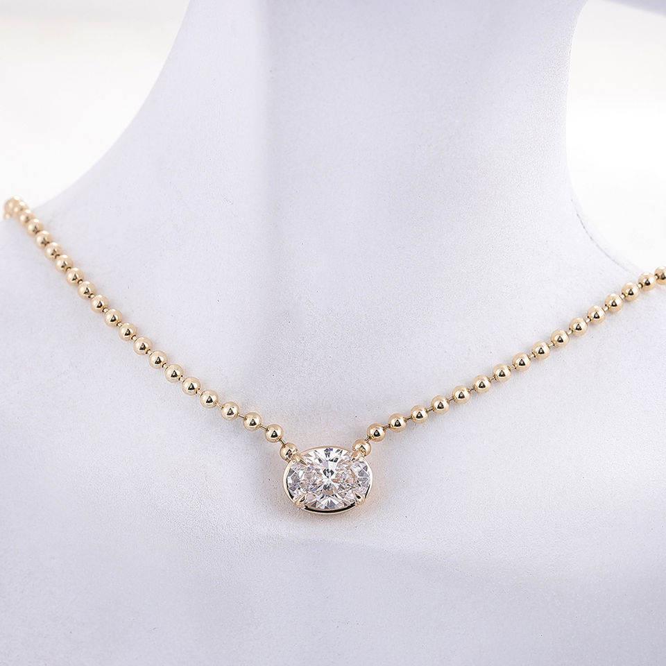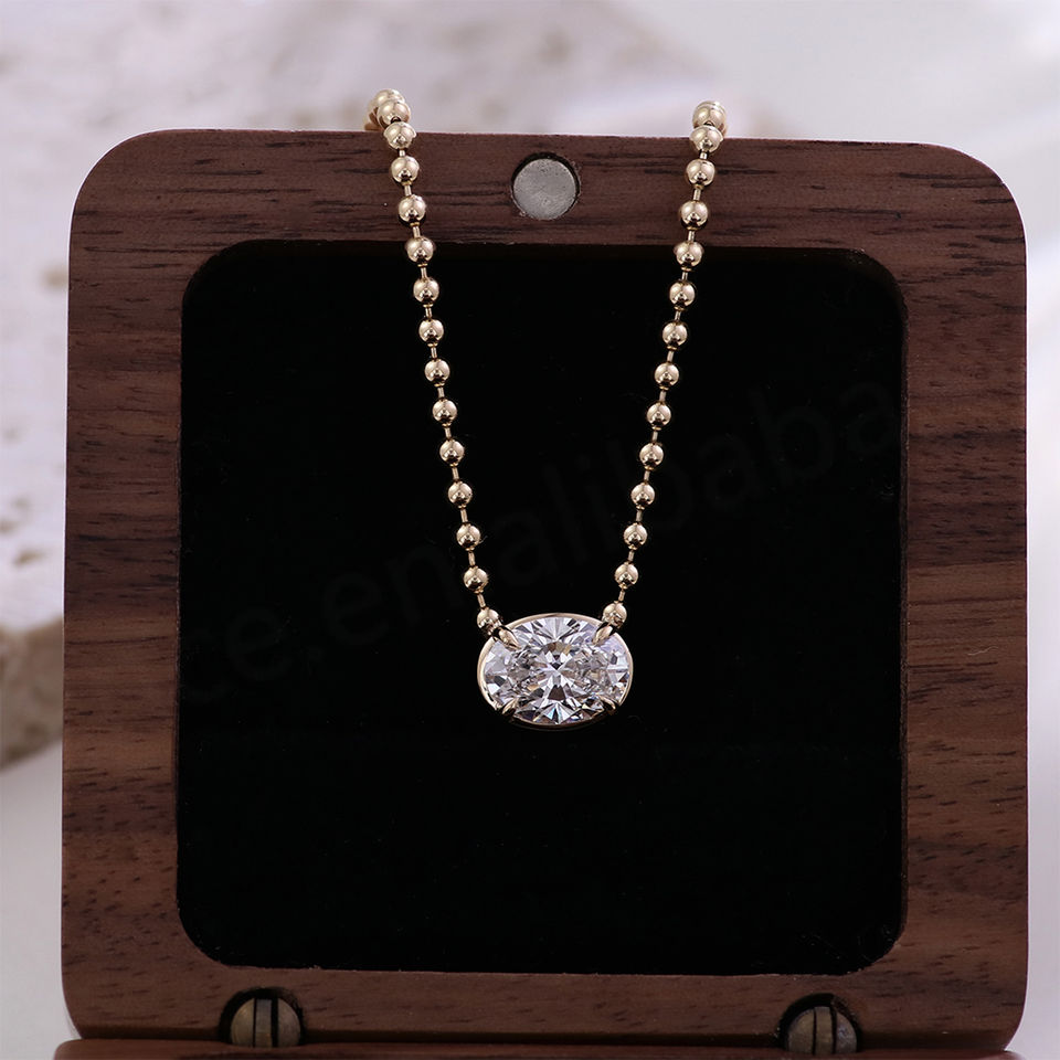 Collar de Diamante Solitario de Lujo con Engaste de Oro Sólido de 14K, Cadena de Cuentas, Diamante Ovalado de Laboratorio con Certificación IGI