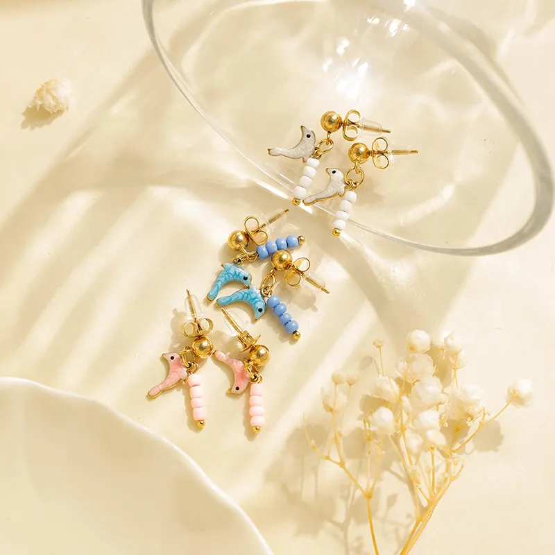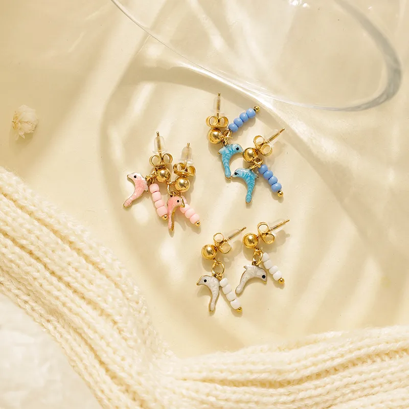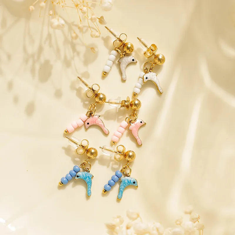 Pendientes de Lujo con Baño de Oro de 18K y Acero Inoxidable 304 con Electroplacado al Vacío, Diseño de Delfín, Estilo Oceánico, para Mujer, Accesorios Elegantes