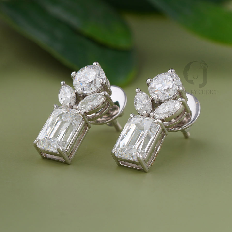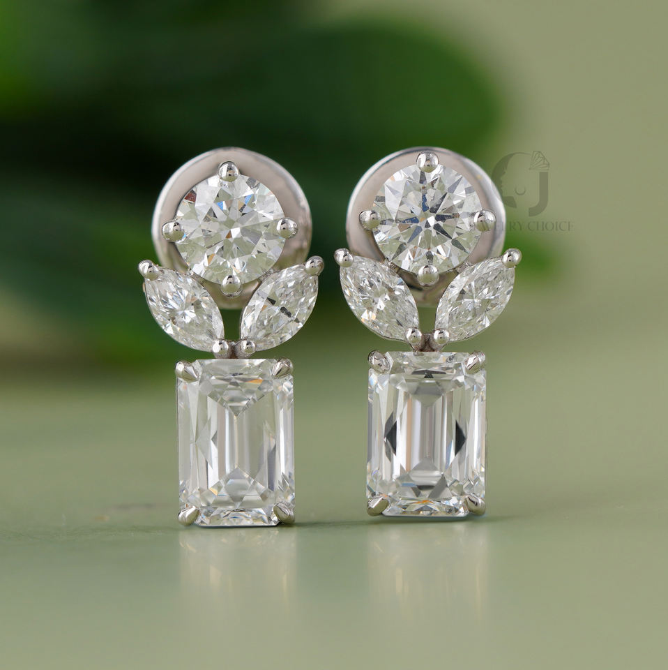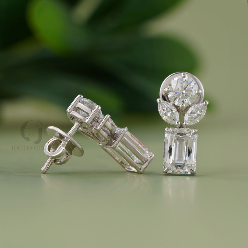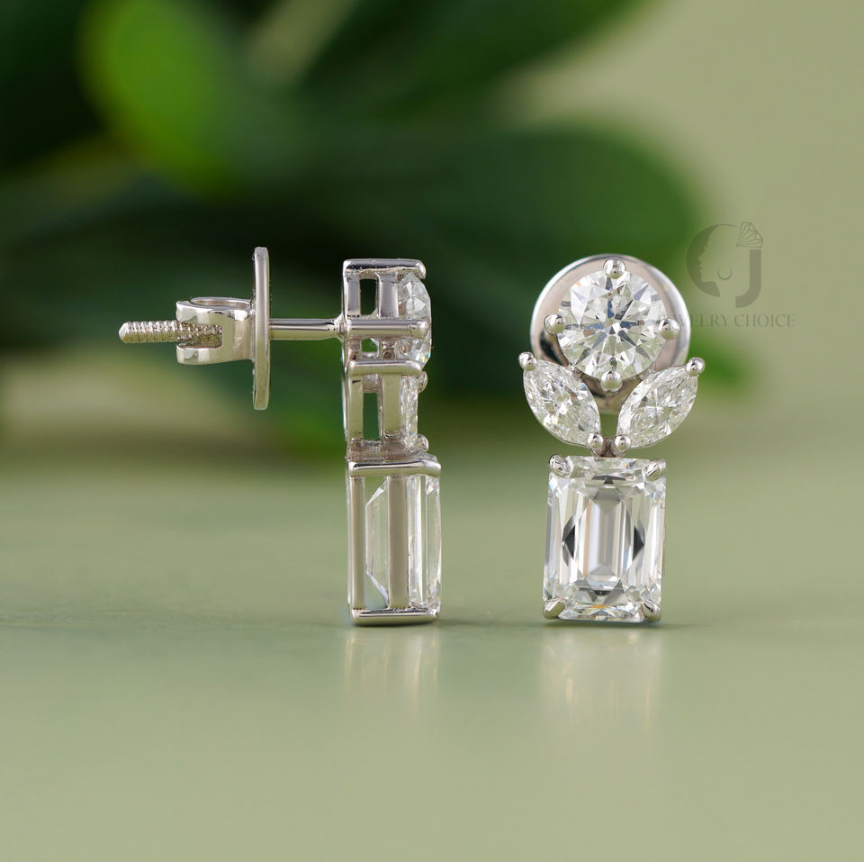 Pendientes Colgantes de Lujo con Diamantes de Laboratorio Multicorte de 2.97ct, Esmeralda y Marquesa, Oro Blanco de 14K, Joyería Fina Geométrica