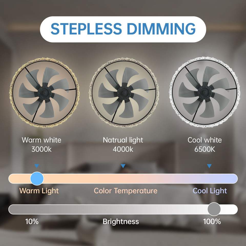 Ventilador de Techo LED de Lujo con 24 Luces, 5 Aspas Invisibles, Control Remoto, Temporizador, Lámpara de Techo LED de Cristal Brillante