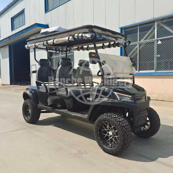Carrito de golf eléctrico de 4 asientos de lujo con batería de litio eficiente y suspensión suave con batería de litio