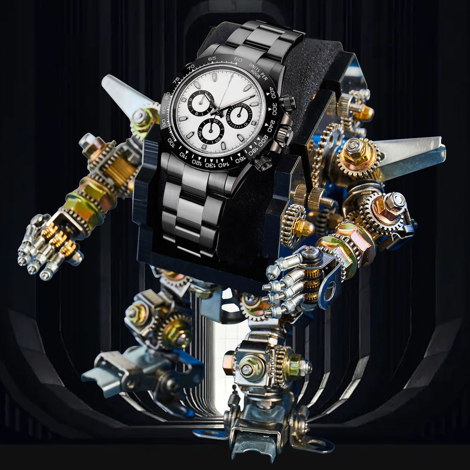 Reloj Deportivo Cronógrafo Mecánico Automático de Lujo de 40 mm para Hombre, Correa de Acero Inoxidable, Esfera Blanca, Subesferas Negras, Movimiento ETA