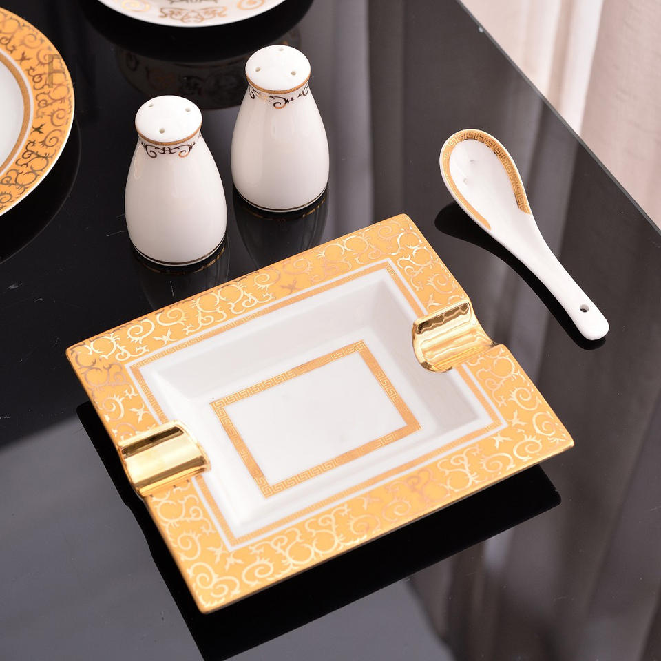Tipo de vajilla:Juegos de vajilla, juegos de vajilla de lujo de porcelana fina con detalles dorados