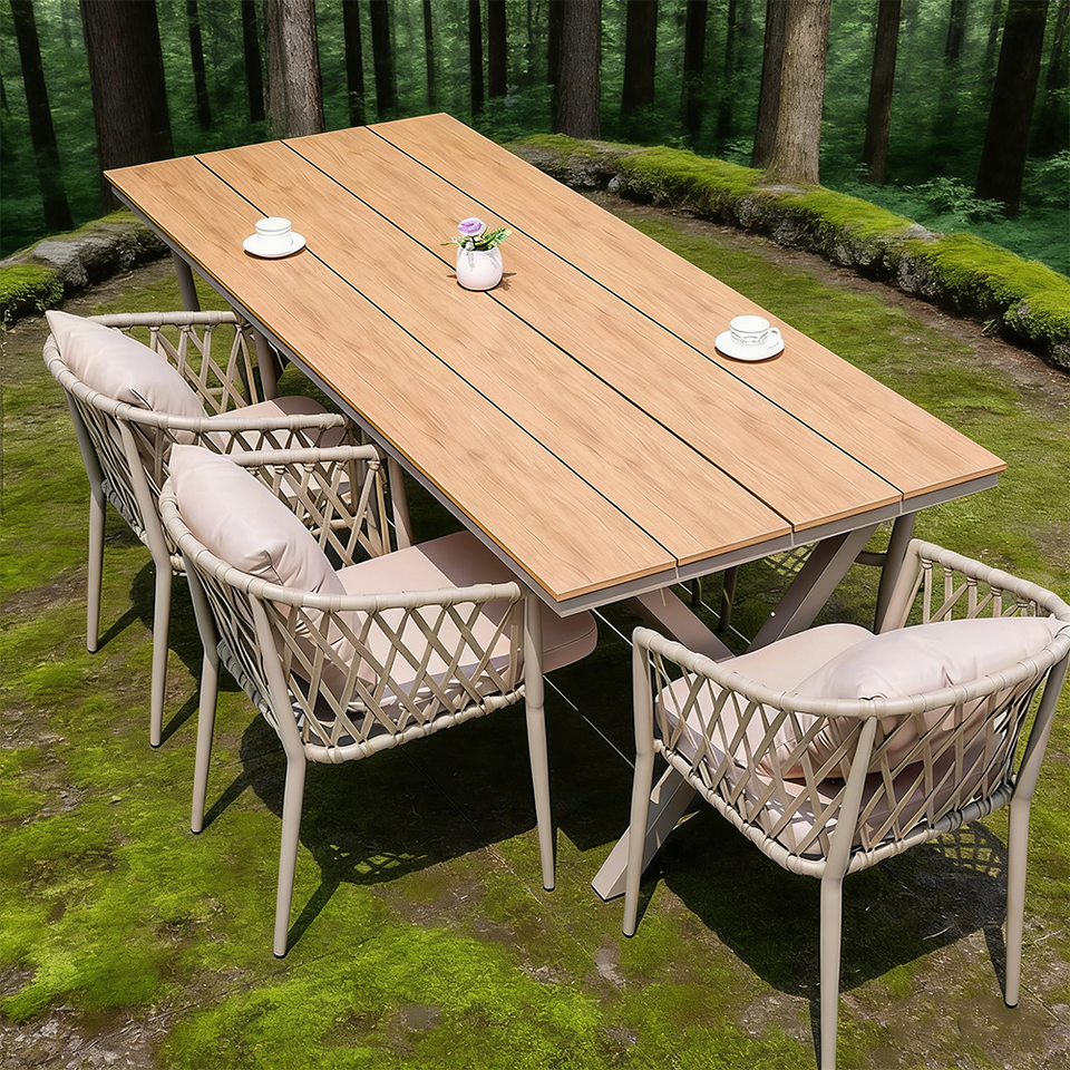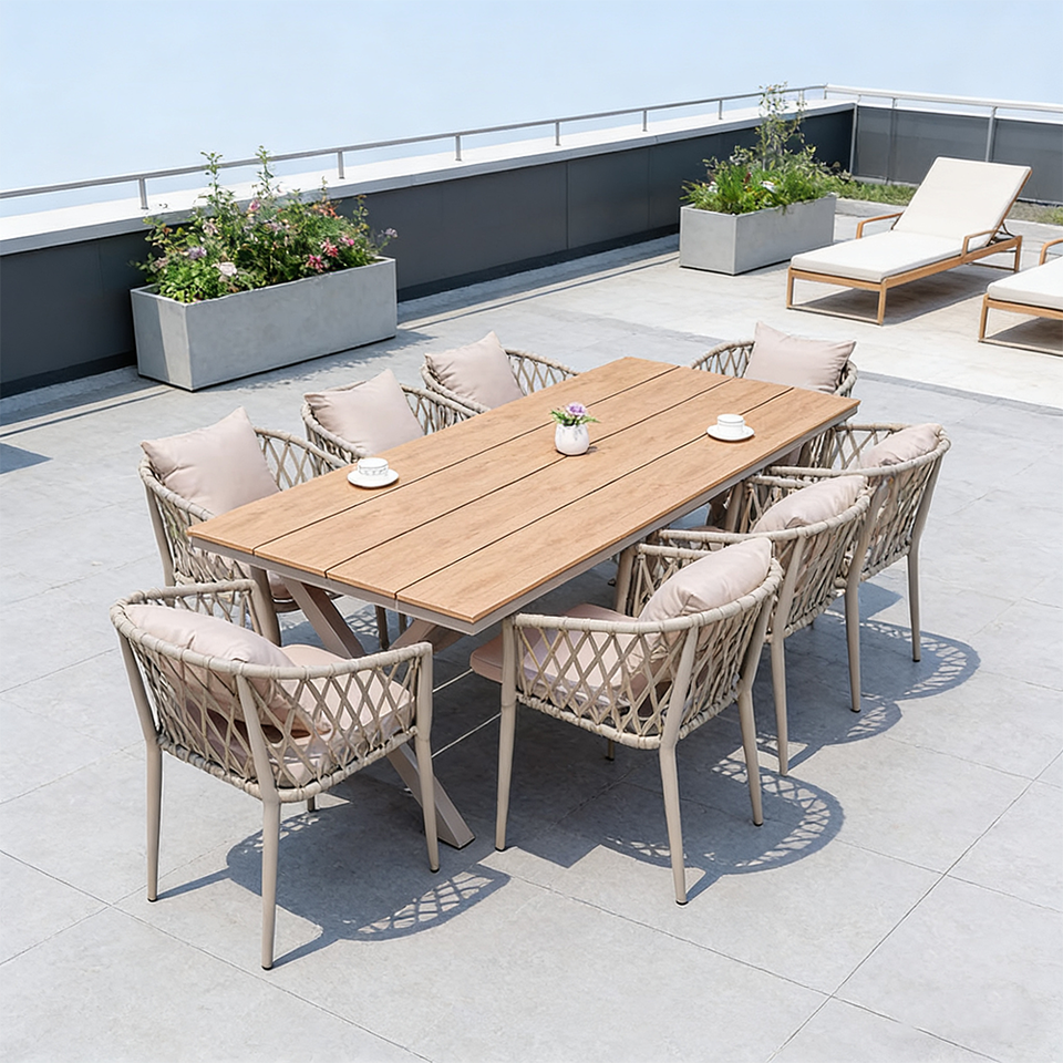 Juego de Comedor de Lujo para 8 Personas, Muebles de Jardín de Mimbre, Sillas de Ratán de Aleación de Aluminio para Exteriores, Patio de Metal, Villa