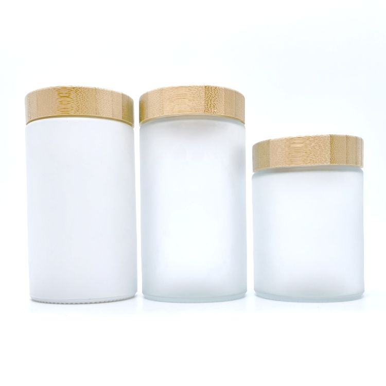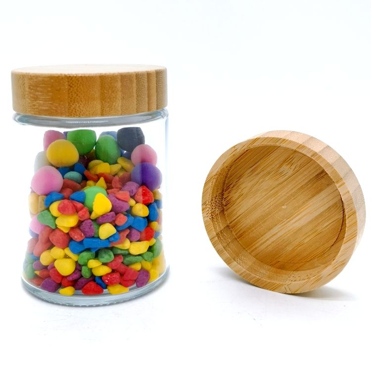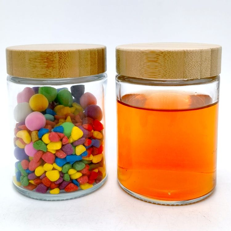 Tarro de vidrio redondo cilíndrico de lujo de 9 oz y 270ml, tarro de especias sellado para almacenamiento de alimentos con tapa de madera de bambú para té, cacahuete, azafrán, sal marina