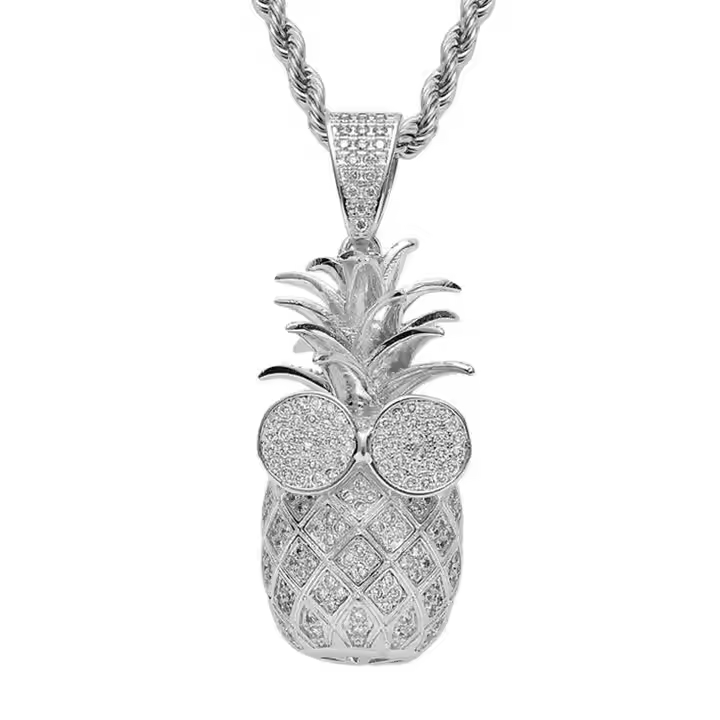 Collar de Plata de Ley 925 de Lujo, Chapado en Oro Rosa, con Colgante de Piña con Incrustaciones de Moissanita de 1.5 Pulgadas, Estilo Hip Hop, Unisex