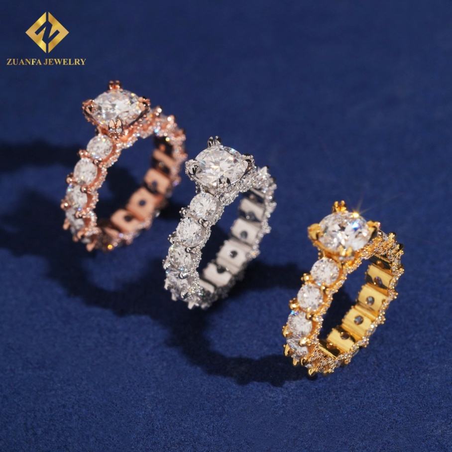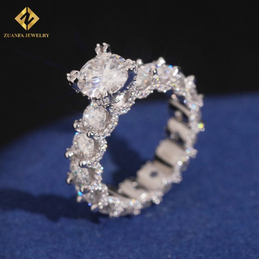 Anillo de Compromiso de Lujo de Plata de Ley 925 con Moissanita VVS1 de 6.78 Ct, Conjunto de Anillos de Eternidad