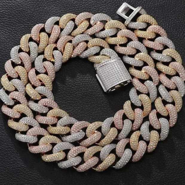 Collar de cadena de eslabones cubanos de Plata de Ley 925 de lujo VVS diamantes de moissanita 14K oro amarillo sólido y regalo chapado en oro rosa