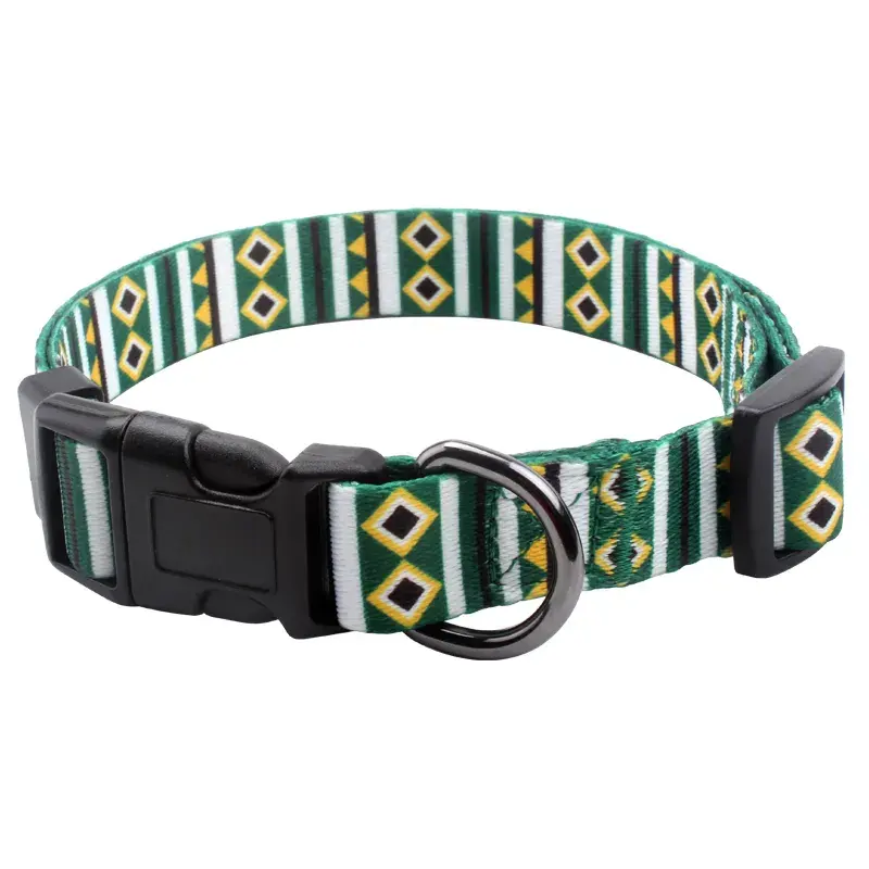 Correa ajustable de lujo de poliéster para mascotas, alta calidad, nuevo patrón de impresión de personalidad, decoración de plumas, opción barata OEM para perros