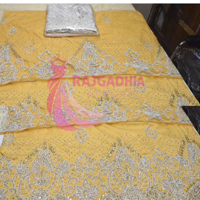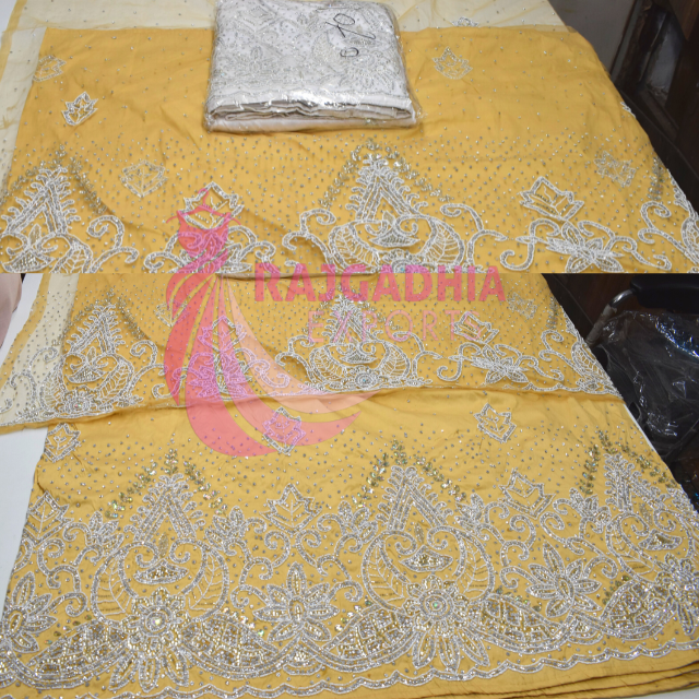 Tela de Seda Satén Africana de Lujo, Estilo George, Completamente Bordada a Mano, Transpirable, Tamaño Personalizado para Vestidos de Novia, Pedido Mínimo de 10 Piezas