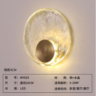 Lámpara de Pared de Cristal con Diseño de Ondas de Agua, Totalmente en Cobre, Estilo Minimalista, Decoración de Pared para Dormitorio y Sala de Estar