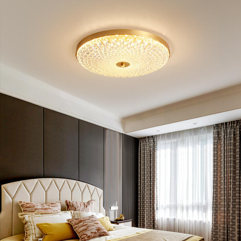 Lámpara de Techo LED de Cristal y Cobre de Lujo, Elegante Lámpara de Estilo Americano para Dormitorio Principal, Habitación de Hotel, Estudio