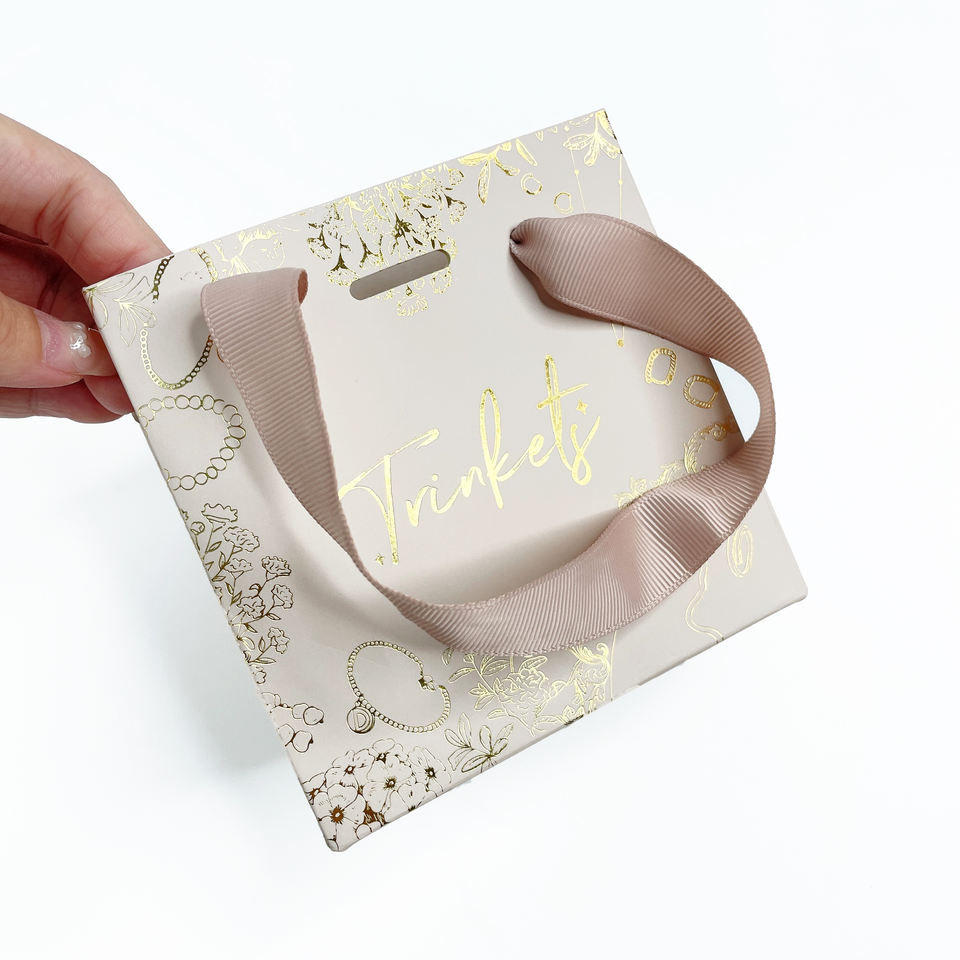 Bolsas de Papel Mini de Lujo con Lámina Dorada, Bolsas de Regalo Pequeñas Personalizadas con Lazo para Joyería de Marca y Embalaje de Regalos Cosméticos