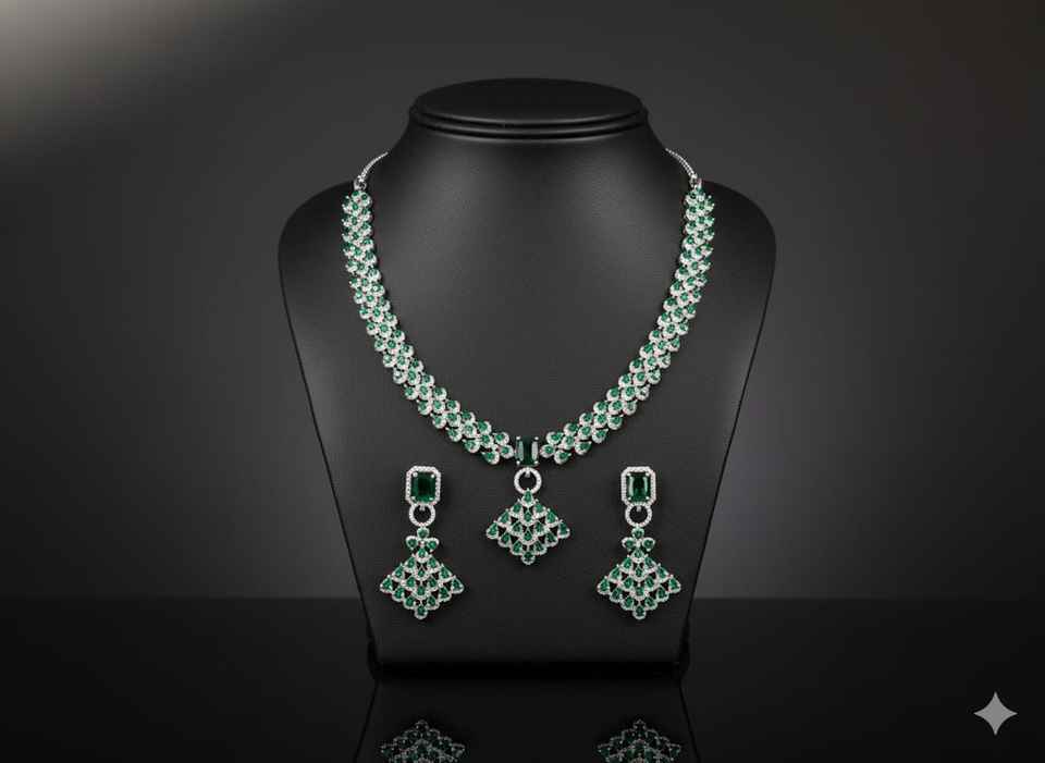 Conjunto de collar de CZ de diamante americano de lujo, joyería de diseñador con acabado de rodio blanco para bodas, festivales y celebraciones