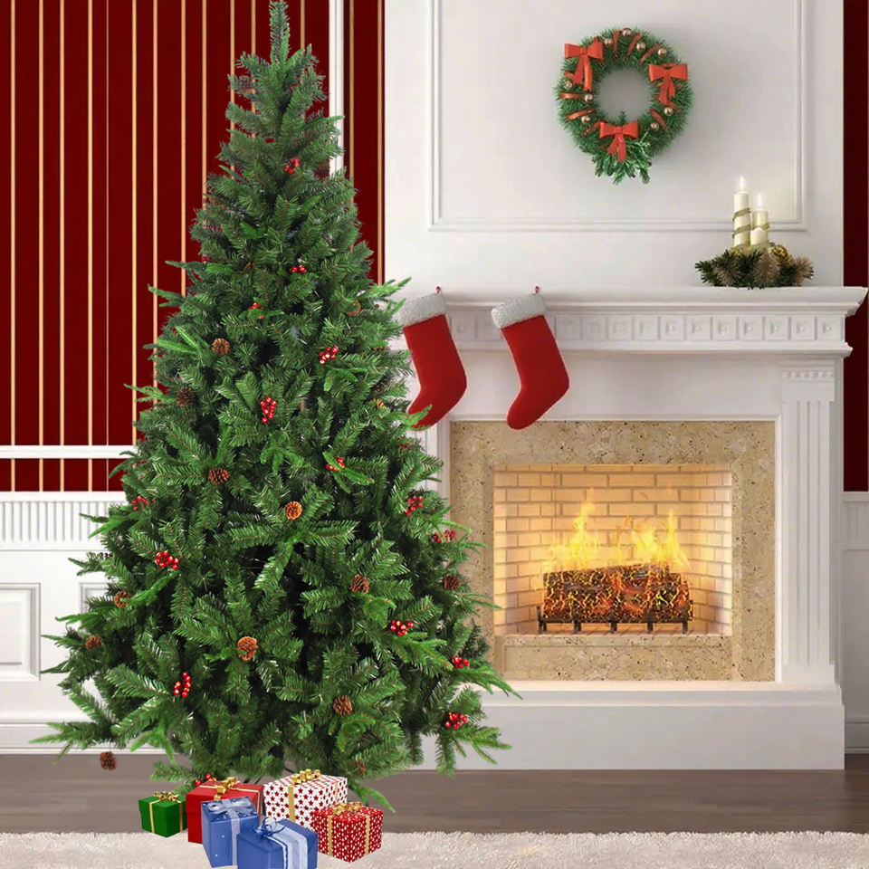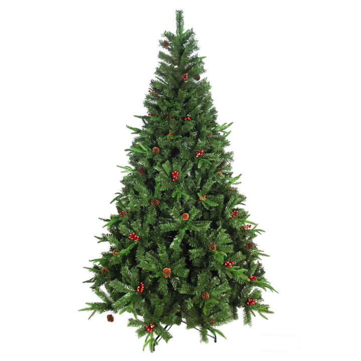 Name:7FT Green Christmas Tree -PVC & PE with Pine Cones/Red Berries