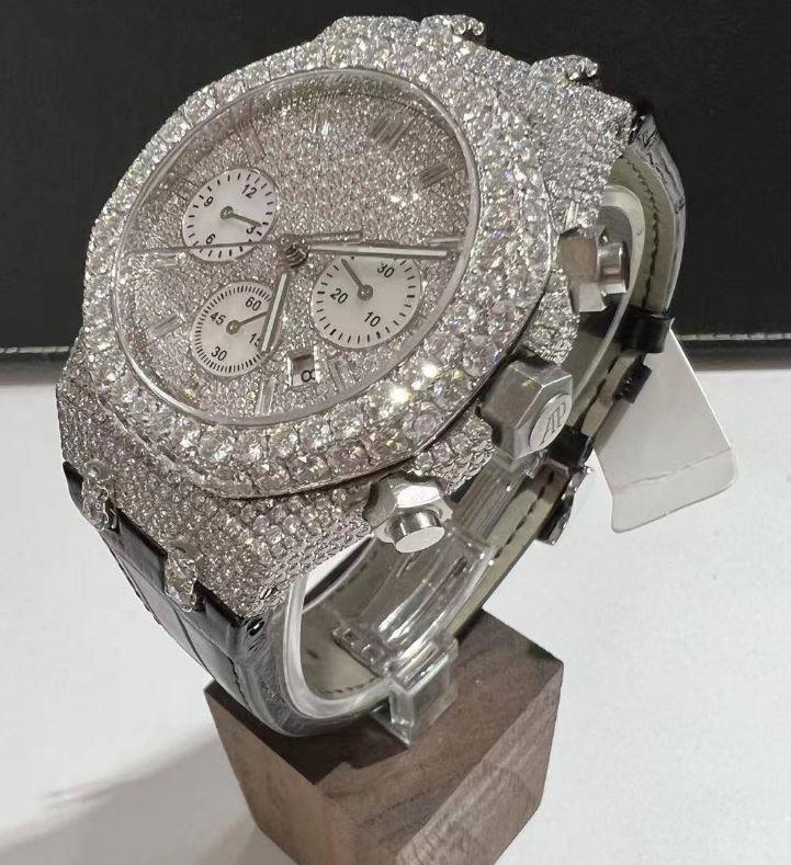 Reloj de diamantes de movimiento automático de lujo con Iced VVS Moissanite, reloj de pulsera de acero inoxidable de cuarzo, joyería de Hip Hop para mujer
